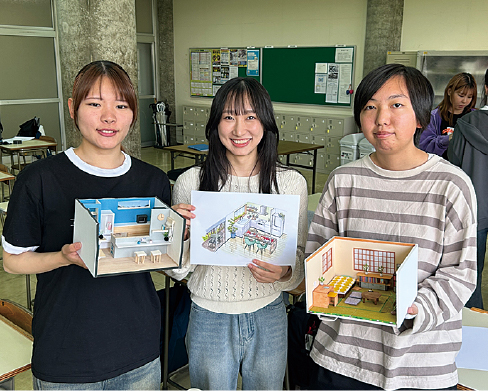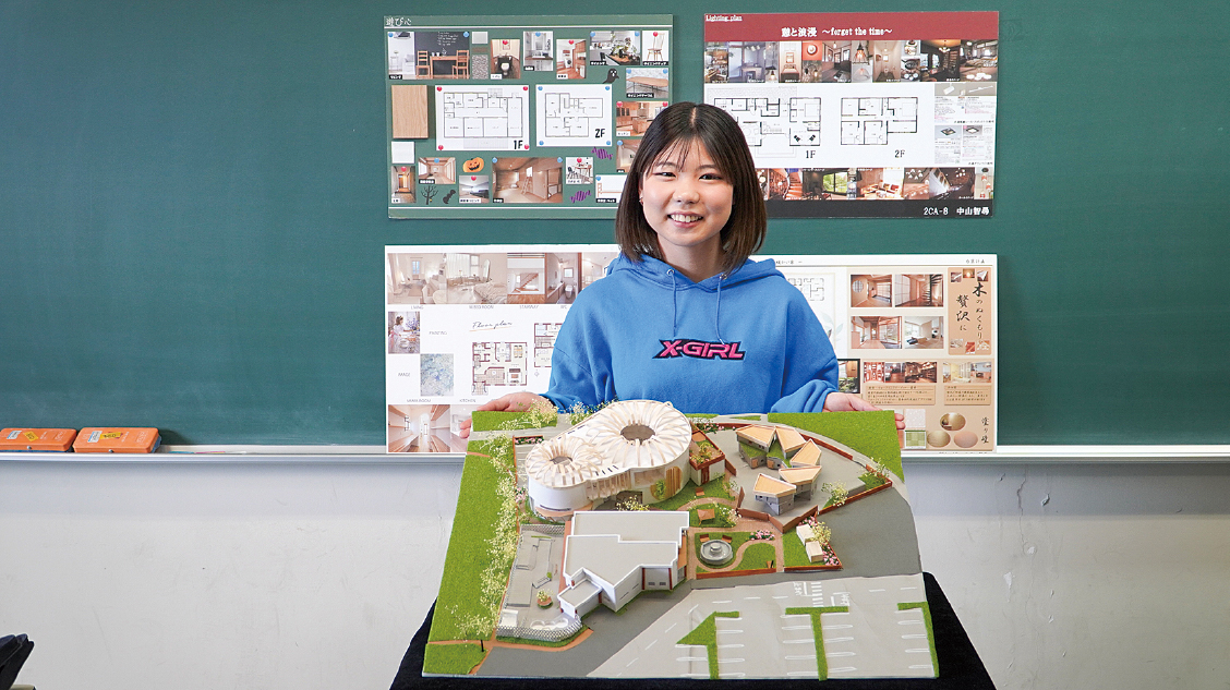 小学校の時、自宅を建てる前に見学した住宅展示場のモデルハウスを見て住宅の魅力に惹かれ、建築士とインテリアコーディネーターを目指すことにしました。毎日楽しく学習できている中で、特にインテリア設計の授業が一番好きです。