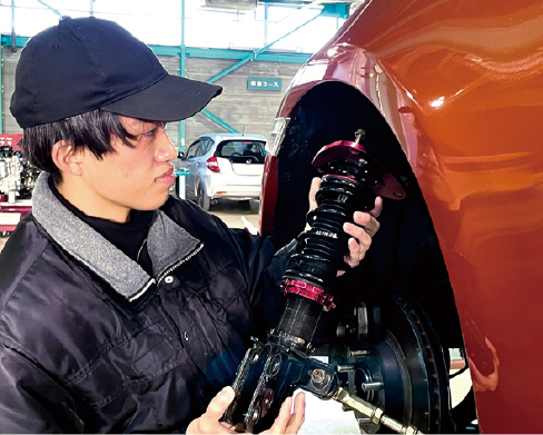 - 趣味は、愛車のカスタムやメンテナンスです。授業で培ったスキルや知識を使って、休日や放課後は趣味に没頭しています。普段、学んでいることが身についていることを実感できるので、モチベーションに繋がっています。