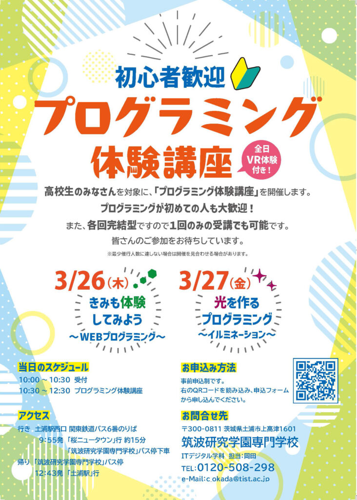 【高校生対象】プログラミング体験講座 開催のお知らせ